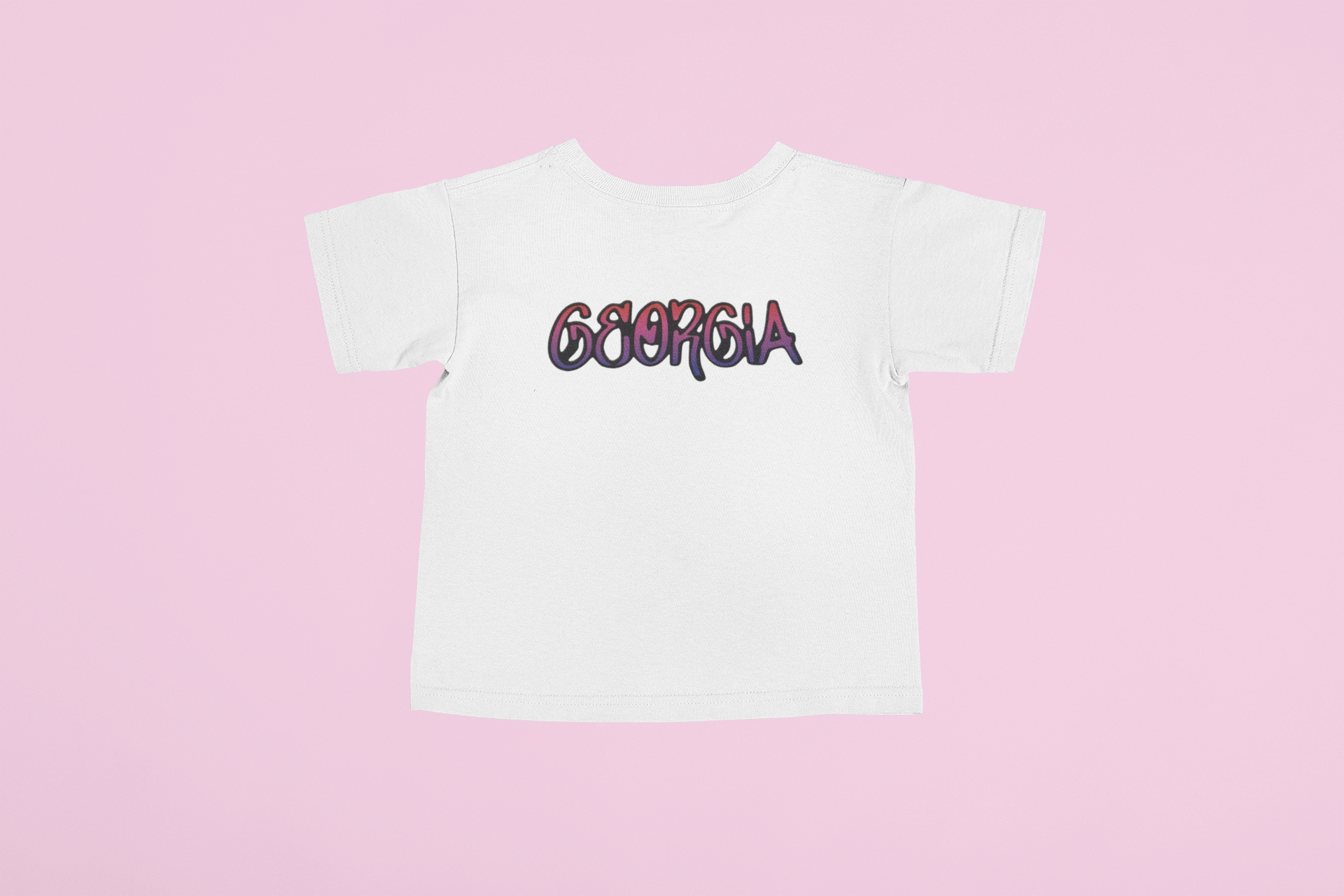 Iconic unisex T-shirt in single jersey with Graffiti print in Custom name. Comes in pink/ purple, Lime/ orange.